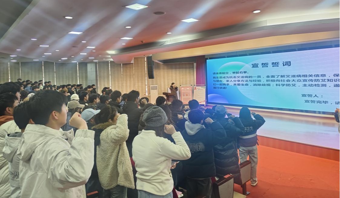 活动现场,全体参会人员唱国歌;宣誓环节,学生代表们庄严承诺主动学习防艾知识、践行健康生活方式。旗帜传递仪式中,参会人员依次传递“防艾抗艾、守护青春”的旗帜,将活动气氛推向高潮。现场还播放了防艾公益宣传片,强调了艾滋病的危害以及科学防治的重要性,教育引导青年学生树立正确的健康观念,提高艾滋病防治知识水平和自我保护意识。